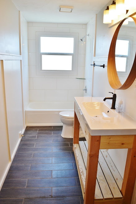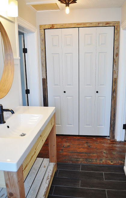 We exposed shiplap on the ceiling and sink wall for some texture.