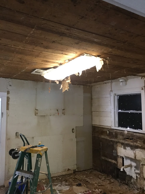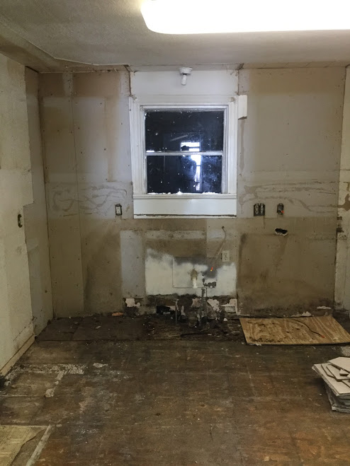 In demo week, we discovered chewed wires and a completely rotten floor underneath the cabinets. Yay!